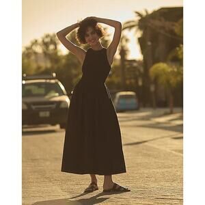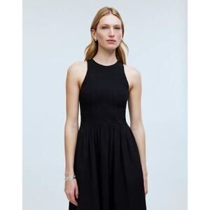 Madewell The Melody Smocked Dress Sleeveless Keyhole Back Midi Black NWT XS