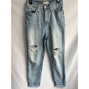 Madewell The Mom Jean Rigid Denim High Waisted Light Wash Retro 26 Distressed