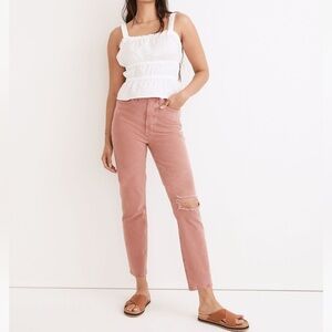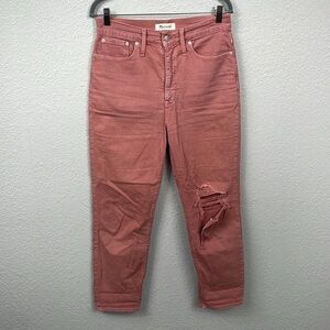 Madewell The Momjean Garment Dye Edition Coral Salmon Knee Rip Sz 28