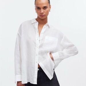 Madewell The Oversized Shirt in Eyelet White 100% Ramie Size Small NWT