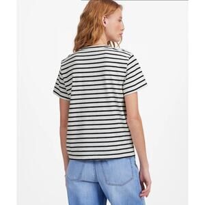 Madewell The Perfect Crewneck Tee WMNS L Black White Striped Jersey Short Sleeve