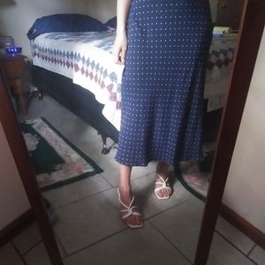 Lightly worn (like new condition) flattering midi-slip skirt from Madewell in polka-dot. Highly rated. No longer available on the site. Runs a tad big in the waist, so size down :)