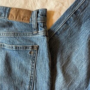 These Madewell denim jeans are in excellent, pre-owned condition. They are high rise, gently worn, and have stretch to them.