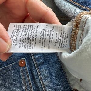 11" high rise, fitted through the hip and thigh, 12 3/4" tapered leg opening, 27" inseam.