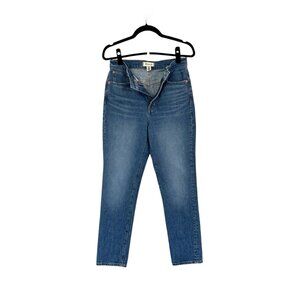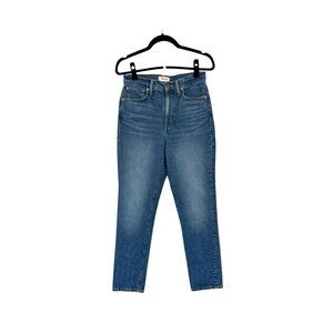 Madewell Decatur Wash The Perfect Vintage High Waisted Contrast Topstitching Lightly Distressed Edges on Magic Pockets Tapered Leg Mom Jean Old School Look Premium Denim Size 28 - Excellent condition.