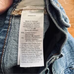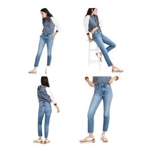 Madewell The Perfect Vintage Jean In Enmore Wash Raw Hem Edition in a size 27. High rise with tapered legs. Front button and zipper closure. Five pockets and five belt loops. 99% cotton, 1% elastane. Measures approximately 14 1/2” flat lay waist, 11 1/2” rise, and 24” inseam. In great condition.