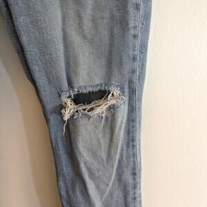 Description: With their waist-accentuating high rise and tapered legs these are "mom jeans"...if your mom was a '90s supermodel. A light wash and a touch of distressing makes 'em look perfectly well-loved.