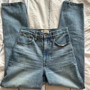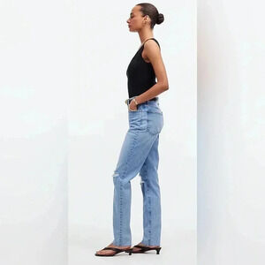 Madewell The Perfect Vintage Straight Jean size 24. Stock photos are to show fit only. Actual product color/knee rips differ and are shown in product photos.