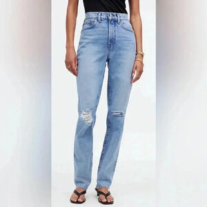 Madewell The Perfect Vintage Straight Jean size 24. Stock photos are to show fit only. Actual product color/knee rips differ and are shown in product photos.
