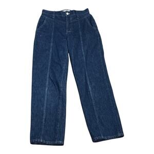 Madewell The Perfect Vintage Straight Jean Seamed Version In Greenhaven Wash in a size 26. Has a heart shaped yoke. Front zipper and button closure. Two front and two back pockets. 99% cotton, 1% elastane. Measures approximately 14” flat lay waist, 11” rise, 27” inseam. In great condition.