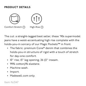 Madewell The Perfect Vintage Straight Jean in Westanna Wash Size 33P NWT