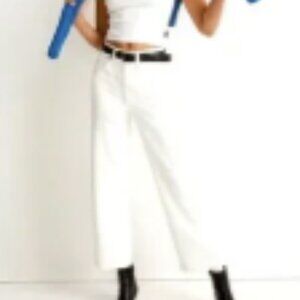 Madewell The Perfect Vintage Wide Leg Raw Hem Crop White Jeans Sz 24