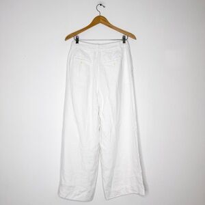 Keywords: Madewell linen pants, white wide-leg trousers, petite high-rise pants, summer linen bottoms, Harlow wide leg, size 4P, breathable vacation wear, minimalist style