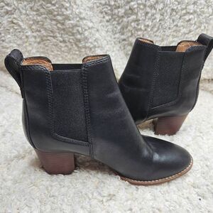 Madewell The Regan Black Leather Pull-on Ankle Boots sz 6