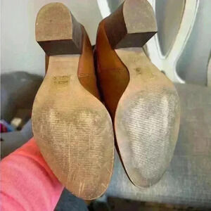 Made of rich leather, these cool pull-on boots have block heels for a little extra height. In great shape, soles show signs of wear. Leather upper and lining and a 2 1/2” heel. No major creases in leather, still have a lot of life left!