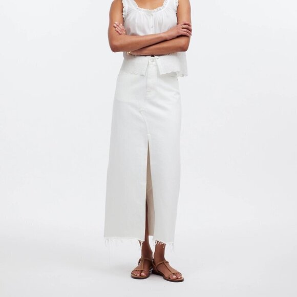 Madewell The Rilee Cotton Denim Midi Skirt Raw Hem White Size 33 NWT