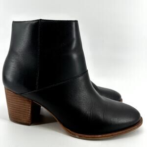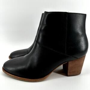 Madewell The Rosie Ankle Booties Side Zip Almond Toe Heeled Leather Black 7.5
