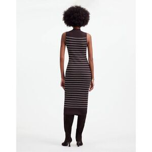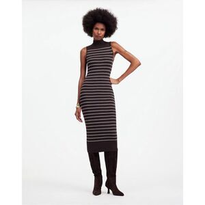 MadewellThe Signature Knit Mockneck Sweater Dress in Stripe Espresso Size L NWT