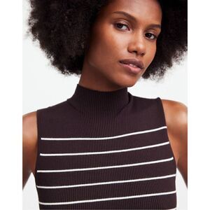 Style: striped dress, ribbed knit, sleeveless, mock neck, midi length, fitted silhouette, casual chic, minimalist, versatile, classic style, timeless design, neutral tones, modern wardrobe, elegant, soft stretch, flattering fit, transitional piece, layering essential, seasonless wear, comfortable, polished look, contemporary, figure-hugging, refined, sophisticated, everyday staple, elevated basics, clean lines, seamless design, bodycon style, tailored fit, breathable fabric, effortless chic, monochrome vibes, wardrobe essential, urban style, streamlined, trendy silhouette, modern femininity, cozy yet stylish, bodycone.