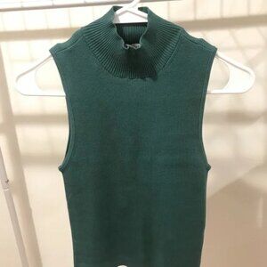 Ribbed, mock neck sweater tank in a beautiful green color. The material is nice and works great for pretty much any season. A great layer in winter, spring, and fall, and a soft basic tank for a good summer look. Size S