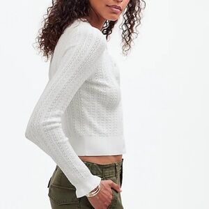 semi-open Signature Knit. With a flattering slim fit, it has ruffled cuffs that add a playful finishing touch.