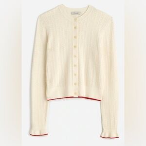 semi-open Signature Knit. With a flattering slim fit, it has ruffled cuffs that add a playful finishing touch.