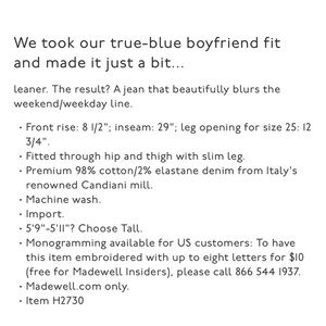 Experience the perfect blend of comfort and style with Madewell's Boyfriend Jeans. These jeans offer a relaxed fit, making them ideal for casual outings. Crafted with high-quality denim, they ensure durability and timeless appeal.