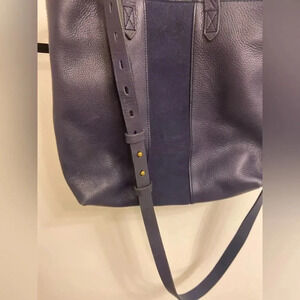 Madewell The Small Transport Leather Tote Dark Midnight Blue. Good pre-owned condition. There are surface scratched throughout on the leather. The edges have wear. Wear inside. Two inside pockets. Adjustable strap. Please see photos for measurements. 100% Leather. Please ask any questions!