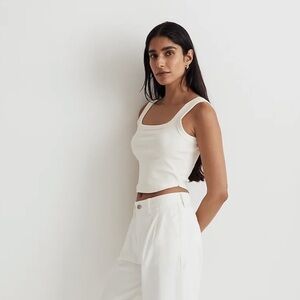 Slim and sexy, this cropped tank top has a front-back square neckline and slightly curved hem. Made of our Sleekhold, it's beautifully body-hugging with a supertouchable ribbed texture (it feels nice against the skin).