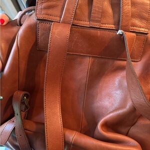leather carryall? Here it is by the numbers... 3 ways to carry it: single strap, both straps or by the sturdy top handle. 4 pockets: one outside and three inside, making it oh so easy to stash your essentials. 24: the number of hours in a day that this bag looks cool. How often you'll reach for this one? 500 gazillion times.