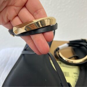 New with box however box shows incorrect size. Shoes are a 10.5. No flaws! Like jewelry for your feet, these strappy leather sandals feature a wraparound ankle strap accented with a removable, gold-toned bangle at the front. Designed with a square toe, toe loop and flat footbed, this simple shoe makes a statement.