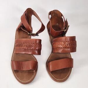 Madewell The Warren Leather Sandal Womens 7 Brown Block Heels Strappy Woven Boho