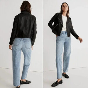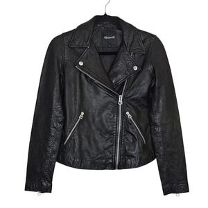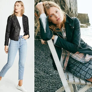 Madewell The Washed Leather Black Moto Biker Jacket Size XS