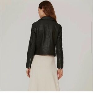 An authentic biker style in buttery washed leather for that perfectly broken-in, had-it-forever look. True to the source, this motorcycle jacket is complete with chunky silver hardware, like lapel snaps and sleeve zips.