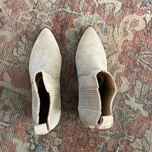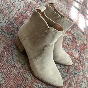 With classic western stitching and a comfy stacked heel, this supple suede ankle boot is the cutest (and goes with any and everything). The pull tab and covered elastic inserts make taking them on and off a total breeze.