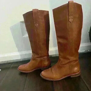 Madewell knee high brown leather boots. Note this version does not have a zipper. See images for some scratches on the leather. Fits true to size.