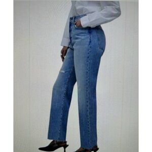 Madewell The'90s Straight Jean in Revoir Wash Ripped Cowboy Crease Blue Size 25