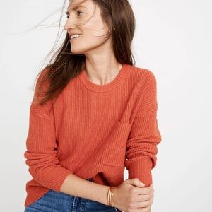 Madewell Thompson Pocket Pullover Sweater, Heather Lipstick coral orange, Small