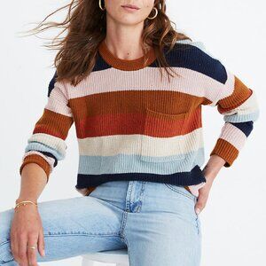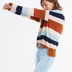 Madewell Thompson Pocket Pullover Sweater in Rainbow Stripe Size S