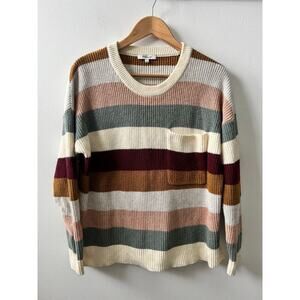 Madewell Thompson Rainbow stripe pocket sweater size large