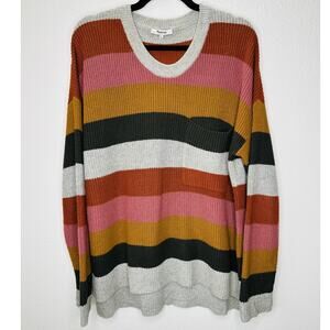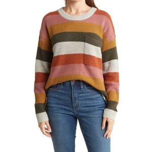 Madewell Thompson Striped Front Pocket Hi-Low Long Sleeve Sweater L