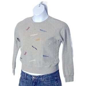 Madewell Throwback Embroidered Cities Sweatshirt S | Cropped Gray Crewneck Pullover