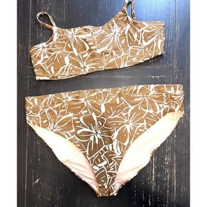 Madewell Tie Back Bikini White Gold Abstract Floral Sepia Plus Size 4x