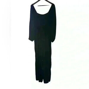 Madewell Tie Back Black Smocked Bodice and Satin Jumpsuit Size 20