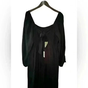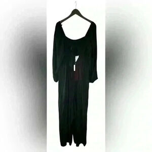 Beautiful jumpsuit from Madewell. NWT. Can be off shoulder or on, smocked bodice for comfortable fit. Tie back with open back detail. Long sleeves with elastic opening. Wide leg style. Pretty small pattern on satin legs and sleeve. Stunning impersonal me perfect for an evening out. Would work for office or any occasion. Dress it up or down.