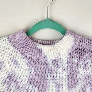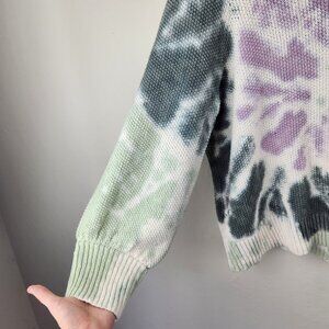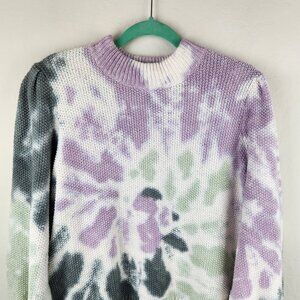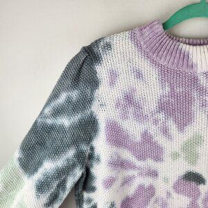 Madewell Tie Dye Puff Sleeve Cotton Knit Sweater Purple Green sz XXL
