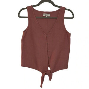 -Style Name: Texture & Thread Button Front Tie Tank Top