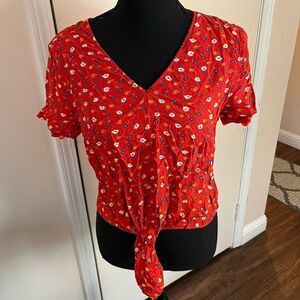Madewell Tie Front Top in Prairie Posies Print Size Small