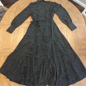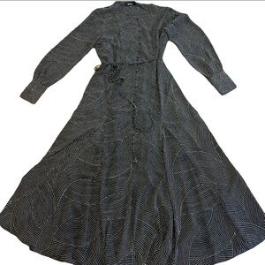 Madewell Tie Waist Midi Dress Black Dot Small Fit Flare Button Front Academia