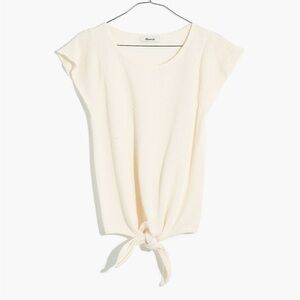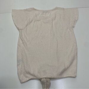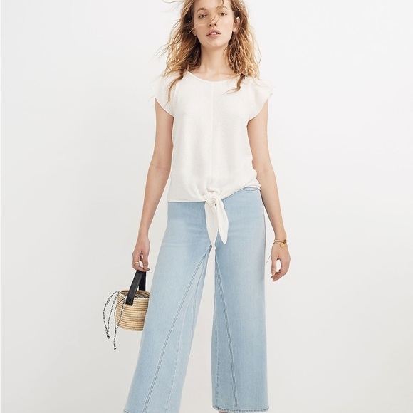 Our favorite summery sweater, now with an adjustable tie-front. Light, breezy and textured, with a subtle flounced cap sleeve.